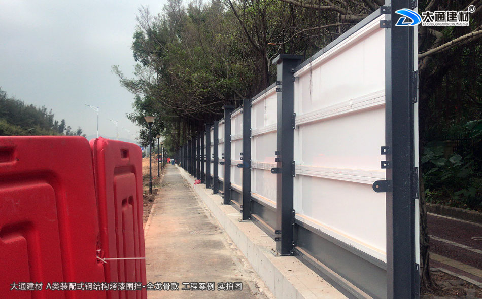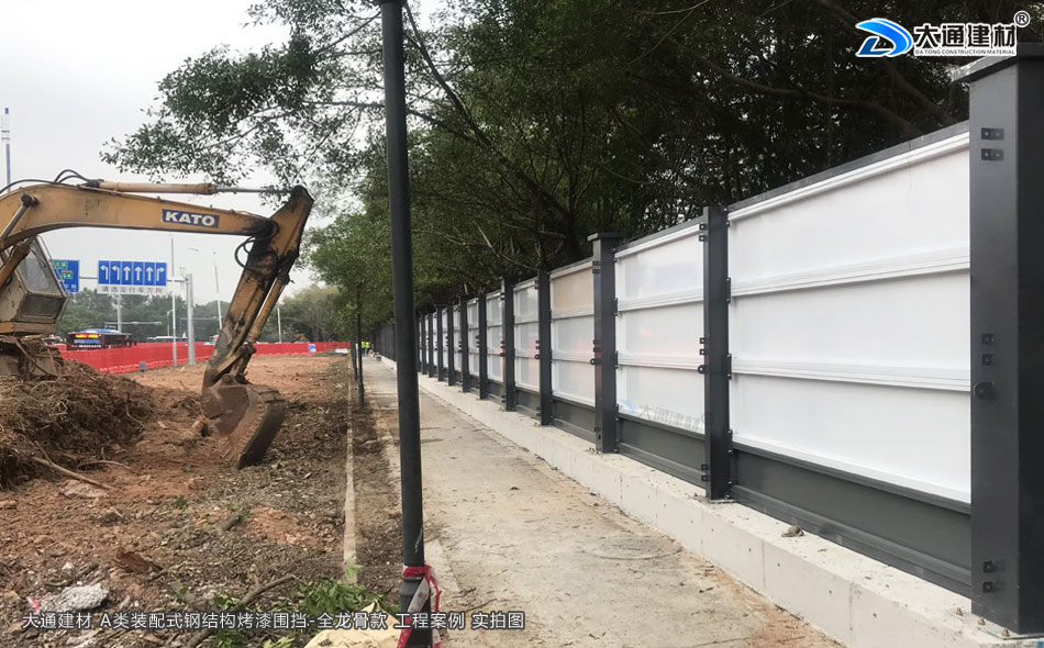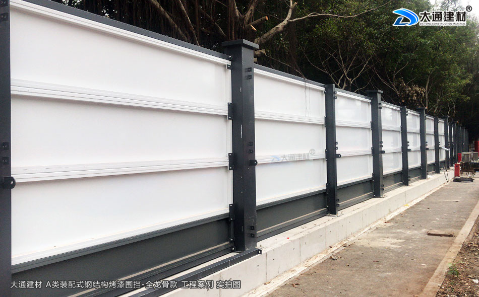 深圳市大通建材圍擋烤漆全龍骨A款是一款施工用防護隔離圍擋。大通建材圍擋A款采用鋼結(jié)構(gòu)設(shè)計,安裝穩(wěn)固,抗風(fēng)力強力;裝配式,拆裝與運輸都很便捷;雙面烤漆鋼板,表面十分光滑,色調(diào)溫和美觀;不易銹蝕,可以很好地抵御強酸強堿的侵蝕,可循環(huán)使用。