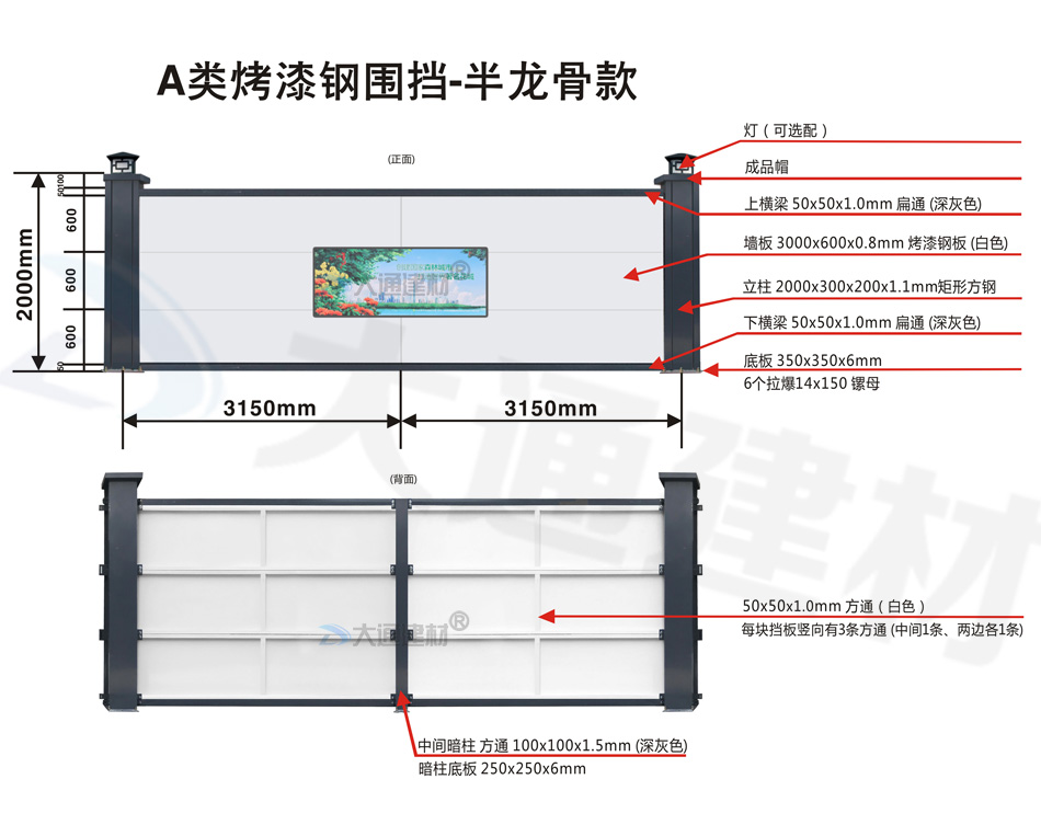 了解更多“大通建材A類鋼結構烤漆圍擋半龍骨款”的生產定制、配送安裝、規格與價格 等詳情 請致電13826562448 梁先生
