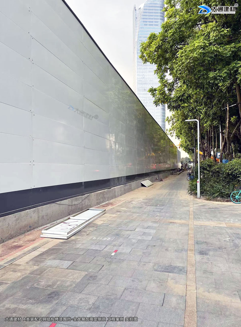 深圳市大通建材生產(chǎn)銷售的A類裝配式烤漆鋼圍擋-全龍骨定制加高款 應(yīng)用于 深圳建設(shè)地產(chǎn)工程項目中