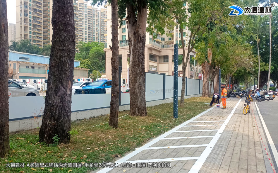 深圳城市建設城區(qū)改造工程項目選用大通建材2米高裝配式圍擋烤漆A款,具有結構牢固、可抗臺風、可回收循環(huán)利用、美觀、環(huán)保等特點,是目前業(yè)內(nèi)倍受喜愛的圍擋之一。