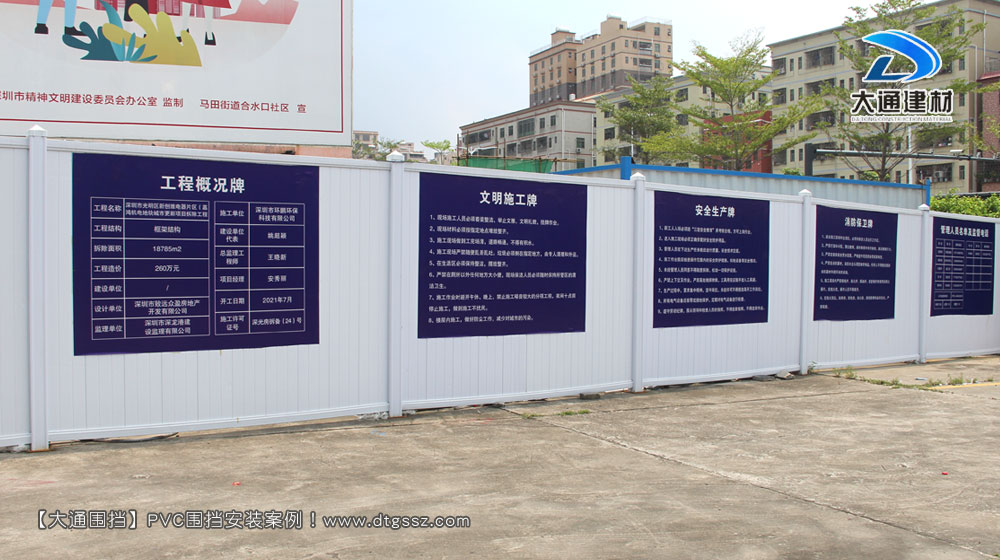 深圳光明新區(qū)PVC圍擋安裝案例,由深圳市環(huán)鵬環(huán)保科技有限公司施工的項(xiàng)目,光明區(qū)舊房拆除工程項(xiàng)目,采用深圳市大通建材有限公司PVC圍擋來做安全防護(hù)圍擋,拆除面積總占地18785平方米,PVC圍擋安裝總長度230米。