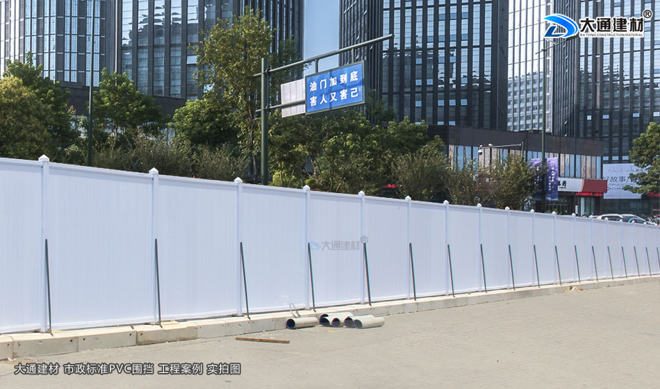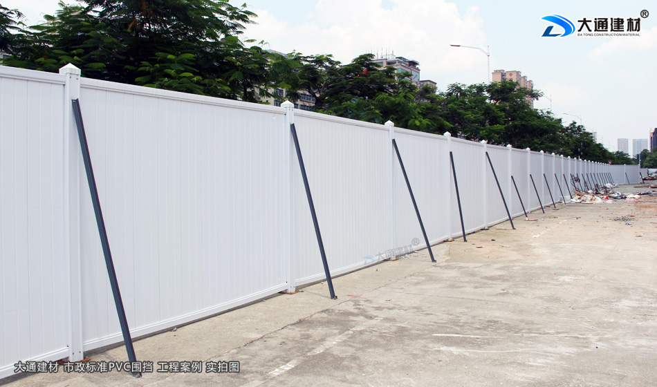 大通建材市政工程PVC圍擋的圍墻板采用白色PVC長條版拼接,而立柱、橫管均為白色PVC材料,內(nèi)部均襯塑鋼方通,立柱底板為鋼板,機動靈活,快速拆裝,簡單快捷牢固,經(jīng)濟實用、成本低; 并加斜支撐,增加受力,承載力大、抗風(fēng)阻系數(shù)高、穩(wěn)定性強。非常適用于市政建設(shè)施工、房地產(chǎn)項目施工、高架橋施工、地地鐵項目施工、路橋維護(hù)施工、隧道施工、立面改造施工、廠房隔斷施工等工程。
