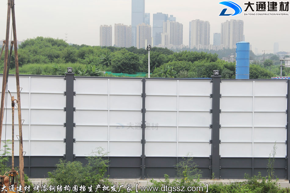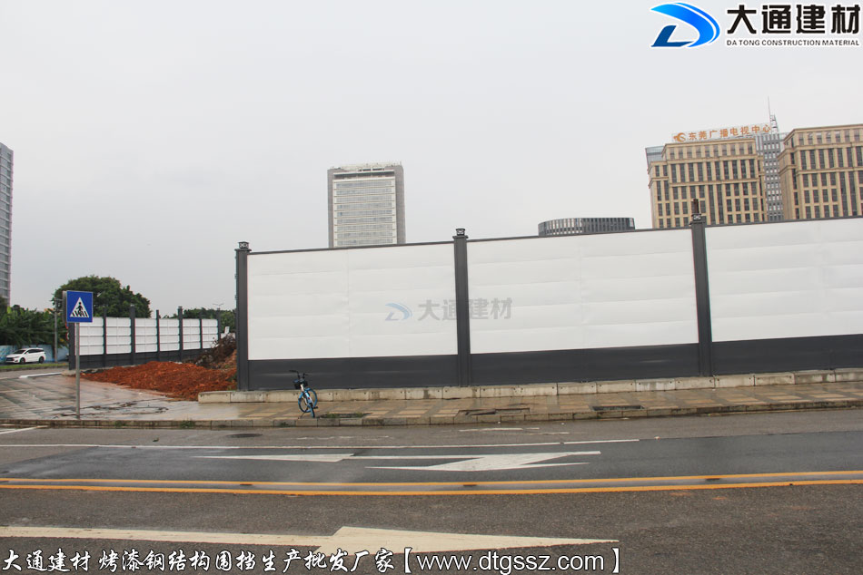 東莞廣播電視中心附近施工工程項(xiàng)目使用大通建材根據(jù)用戶的需求定制化生產(chǎn)的4米高的鋼結(jié)構(gòu)圍擋,這款圍擋是大通建材推出的性價(jià)比很高的A類(lèi)烤漆圍擋半龍骨款,不僅具有美觀環(huán)保的特點(diǎn),還拆裝方便、安全穩(wěn)固、經(jīng)久耐用,適合地產(chǎn)工程項(xiàng)目、市政建設(shè)施工、道路改造等工程使用。