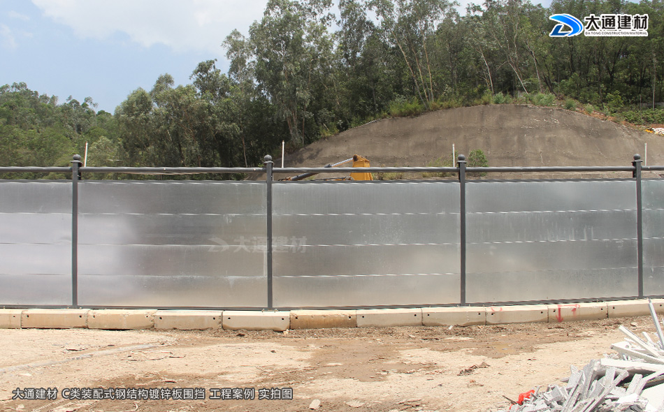 深圳市大通建材鍍鋅板鋼圍擋C款的圍擋墻板采用鍍鋅工藝,圍擋每一檔的長度都是3米,此工程項目使用的大通建材鍍鋅圍擋C款的高度是2.4米,這一款圍擋是帶立柱帽子的,符合市政標準。鍍鋅板鋼圍擋C價格與比圍擋烤漆C款相價格更便宜些,備受工程施工項目單位喜愛。