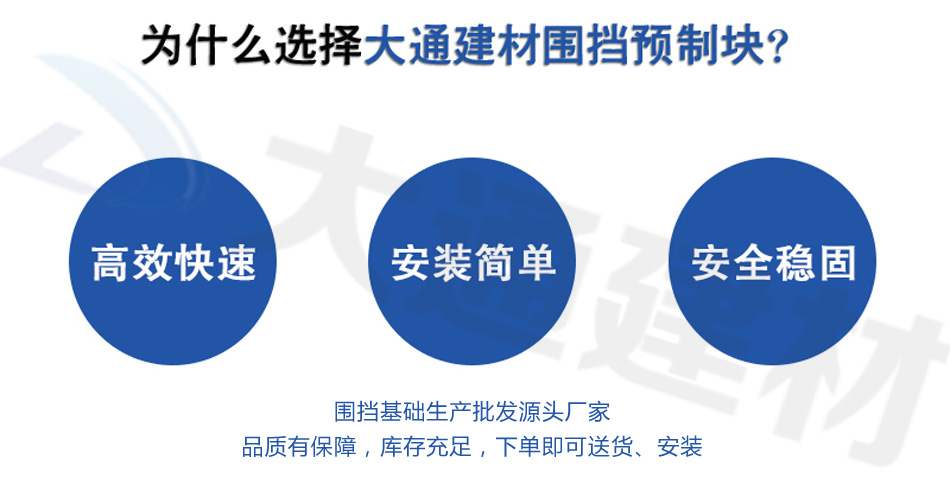 深圳市大通建材有限公司主要生產(chǎn)批發(fā)塊狀圍擋基礎(chǔ)預(yù)制塊,基礎(chǔ)塊將圍擋立柱固定在圍擋基礎(chǔ)預(yù)制塊上,更安全穩(wěn)固,大通建材圍擋基礎(chǔ)預(yù)制塊的常規(guī)尺寸(長(zhǎng)寬高):1000mmx600mmx300mm