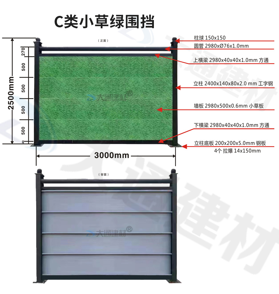 大通建材C類(lèi)小草綠圍擋,拆裝便利、快速拼裝、結(jié)構(gòu)牢固、安全性高,已廣泛應(yīng)用于深圳、東莞、惠州、廣州、汕頭等地區(qū)的工程施工項(xiàng)目中