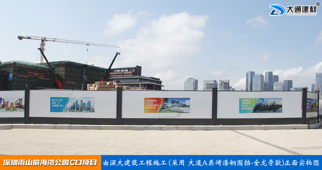 大通建材A類烤漆鋼圍擋-全龍骨款 具有“美觀環(huán)保、抗風(fēng)能力強(qiáng),安全穩(wěn)固、無損耗、無建筑垃圾,拆裝快捷、可多次重復(fù)使用,可疊放、便于運(yùn)輸和儲(chǔ)存,外觀具有美化城市環(huán)境”等優(yōu)點(diǎn),適合房地產(chǎn)修建、市政工程、交通道路等工程建設(shè)項(xiàng)目現(xiàn)場(chǎng)使用。