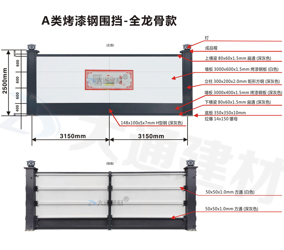 大通建材A類烤漆鋼圍擋全龍骨款適用于市政建設(shè)施工、房地產(chǎn)項(xiàng)目施工、地鐵項(xiàng)目施工、學(xué)校修建、管網(wǎng)改造、小區(qū)改造、城市建設(shè)、道路施工等工程使用