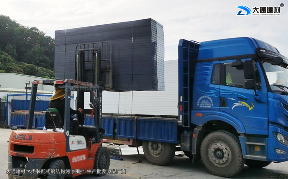 建設工程施工工地四周應按規定設置連續、密閉的鋼結構施工圍擋,建造多層、高層建筑的還應設置安全防護設施。在市區主要路段和市容景觀道路及市場、機場、碼頭、車站廣場等人流量、車流量比較多的地方設置的施工圍擋的高度不得低于2.5m,在其它路段設置的圍擋的高度不得低于1.8m。而深圳市大通建材A類鋼圍擋烤漆半/無龍骨款的標準高度是2.5米、長度為6.3米一擋,而圍擋高度特殊需求的如3/米/4/米/5米/6/米等高度的可以進行定制化生產。