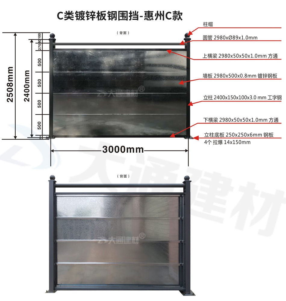 深圳大通建材 鍍鋅板鋼圍擋-惠州C款 安裝說明