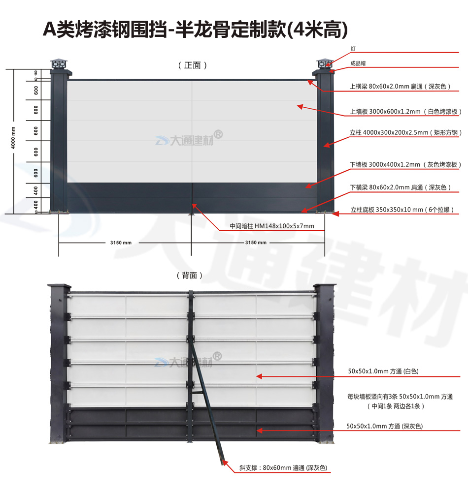 大通建材 A類烤漆鋼圍擋-半/無龍骨4米高定制款 生產廠家