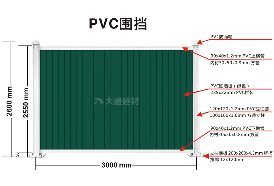 大通建材綠色PVC圍擋 2.5米高的規(guī)格參數(shù) 如上圖展示